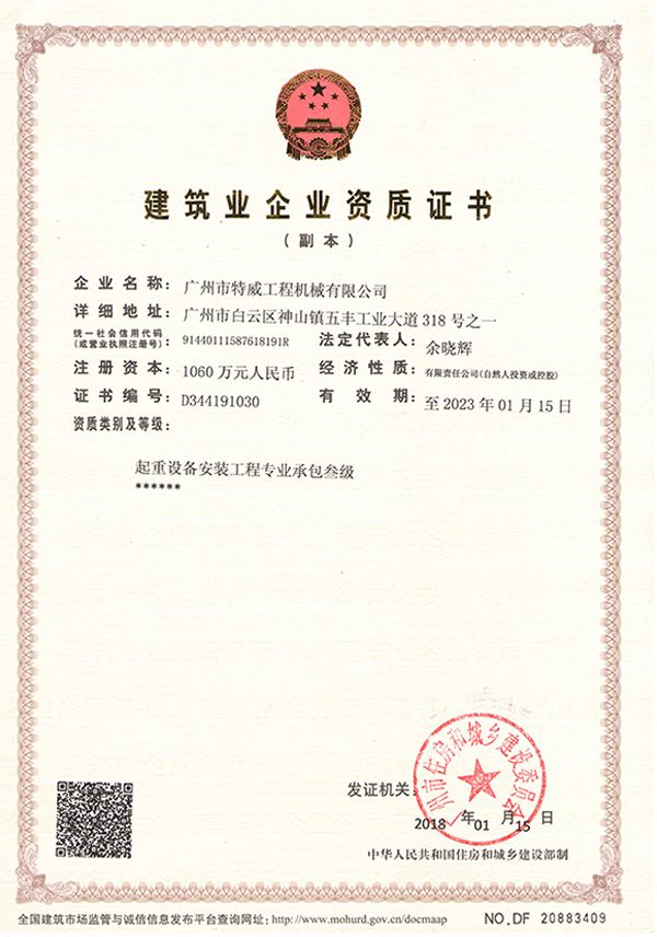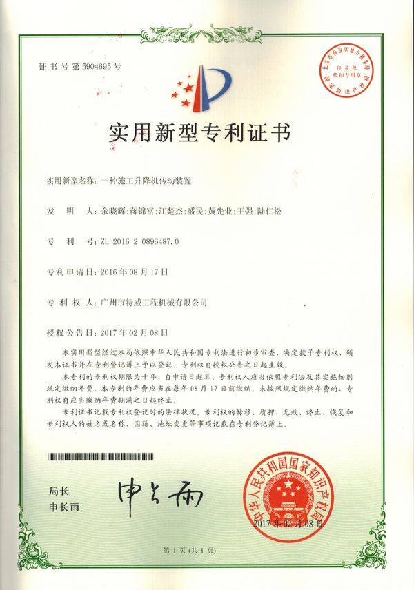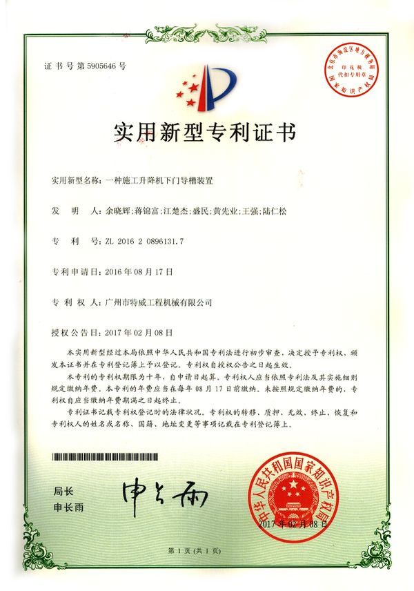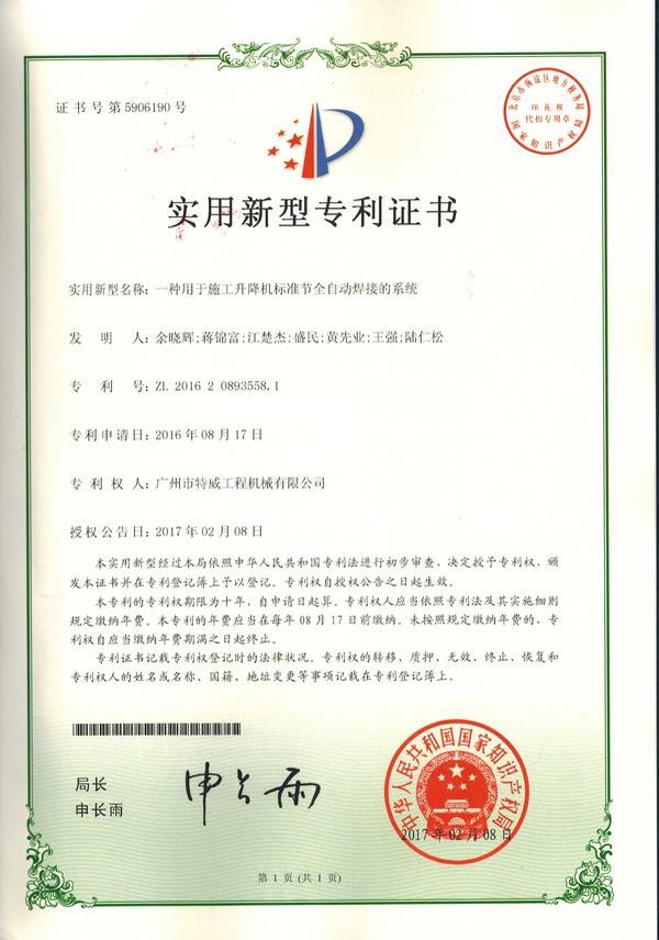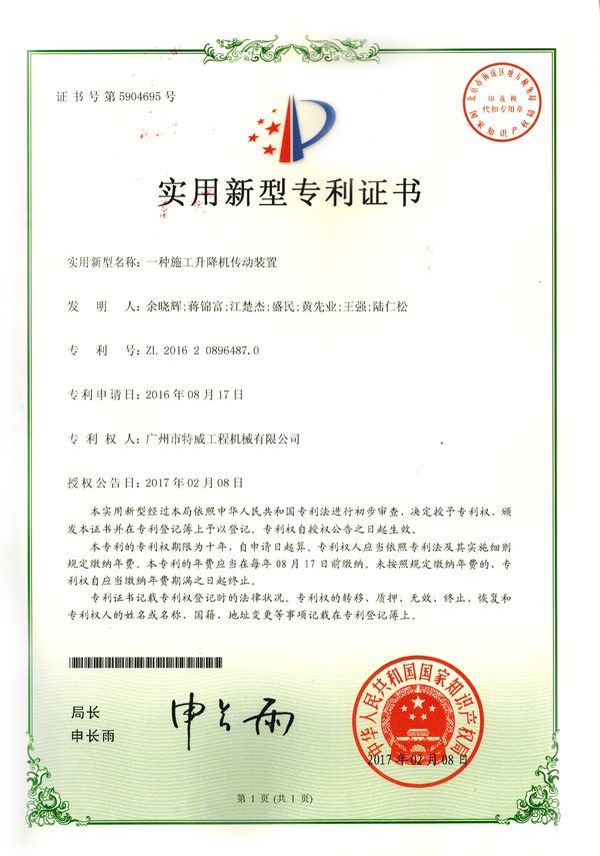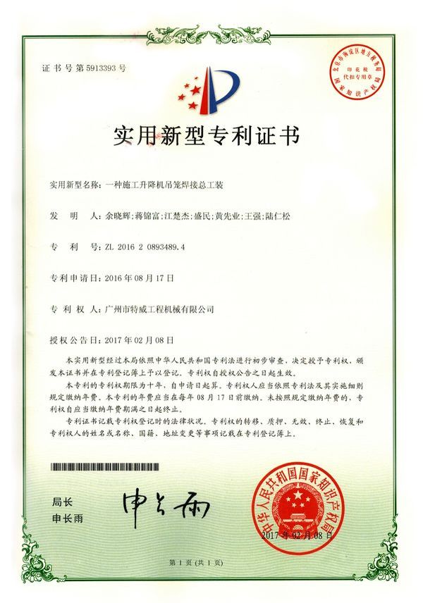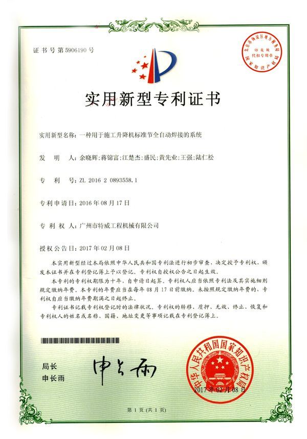走进特威 Enter Twain 精益求精 传承工匠精神 开云电子·(中国)官方网站地处广州市白云区神山镇,广清高速神山出口附近,是一家施工升降机的专业生产厂家。公司成立于2011年,占地100000多平方米,注册资金1060万元,现有员工300余人其中工程技术人员33人,高级技术人员52人。SC200/200G型施工升降机是特威公司的主导产品,是一种靠齿轮齿条传动的电梯。具有广泛的用途,不仅可用于一般的高层建筑施工的人、货运输,还可用于工业、电力、矿井、石油、化工等领域的人货运输。整机的工作级别为A8。 公司产品严格执行行业标准并进行大量人性化处理,在吊笼内饰、电控箱、驾驶室等部位进行优化改进,使用起来更为方便、安全。了解更多特威简介发展历程资质荣誉服务理念
