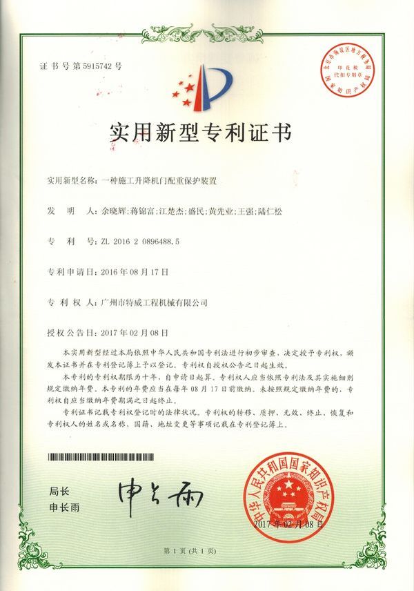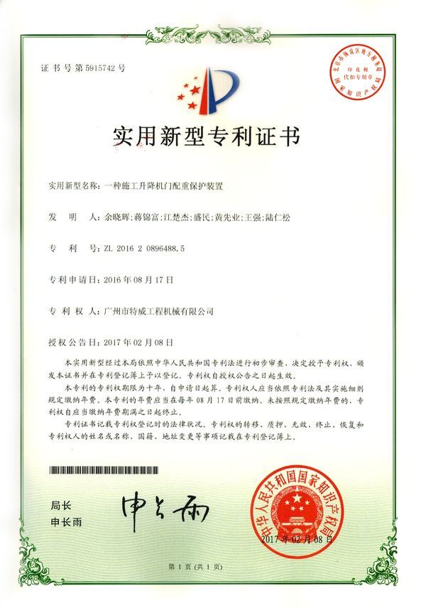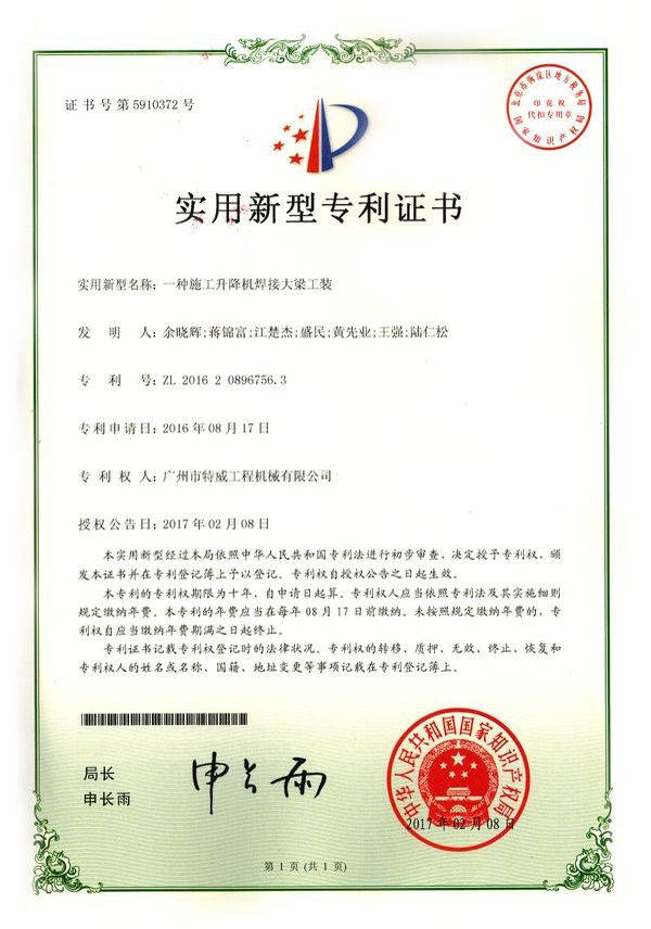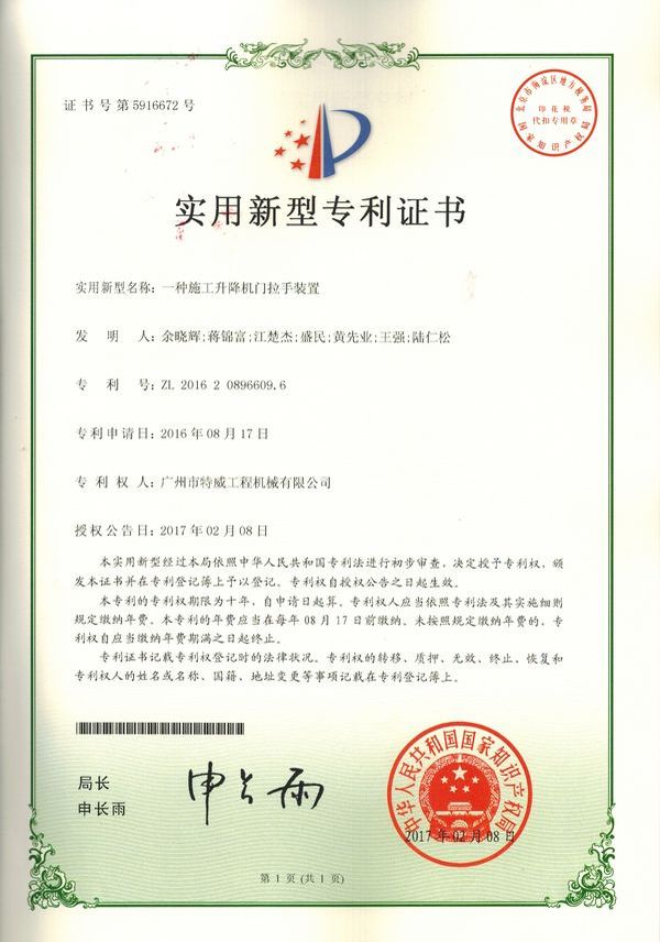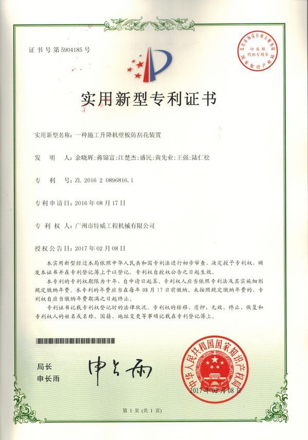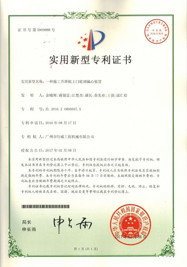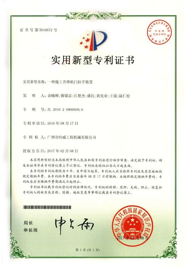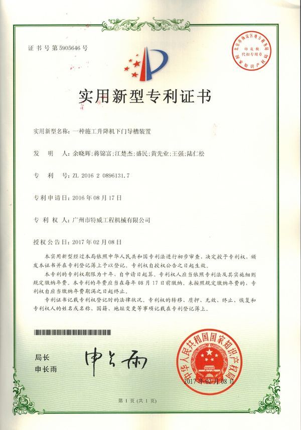 走进特威 Enter Twain 精益求精 传承工匠精神 开云电子·(中国)官方网站地处广州市白云区神山镇,广清高速神山出口附近,是一家施工升降机的专业生产厂家。公司成立于2011年,占地100000多平方米,注册资金1060万元,现有员工300余人其中工程技术人员33人,高级技术人员52人。SC200/200G型施工升降机是特威公司的主导产品,是一种靠齿轮齿条传动的电梯。具有广泛的用途,不仅可用于一般的高层建筑施工的人、货运输,还可用于工业、电力、矿井、石油、化工等领域的人货运输。整机的工作级别为A8。 公司产品严格执行行业标准并进行大量人性化处理,在吊笼内饰、电控箱、驾驶室等部位进行优化改进,使用起来更为方便、安全。了解更多特威简介发展历程资质荣誉服务理念