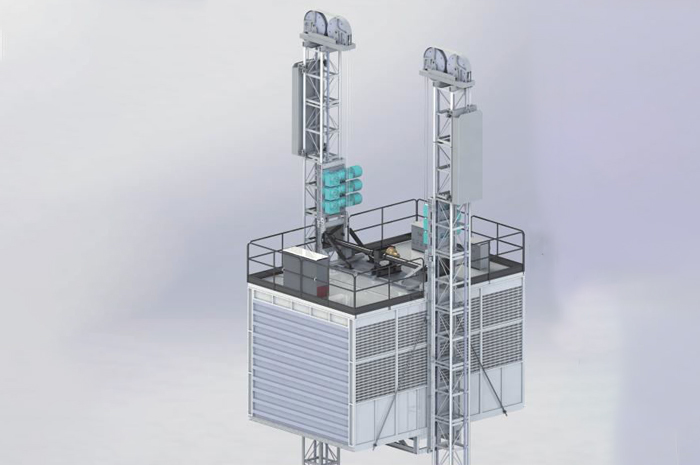 SC系列特殊机型 SC800G双柱施工升降机: 1.采用双导轨结构,升降机采用变频控制,运行平稳 2.特制限速装置,实现一个限速器两端同步制停 3.超大型吊笼,用于运体积大、重量重货物